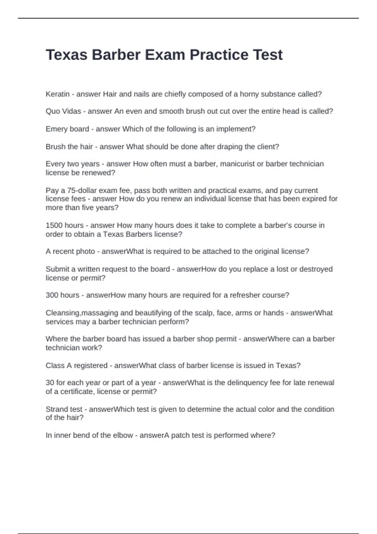 Texas Barber Exam Practice Test