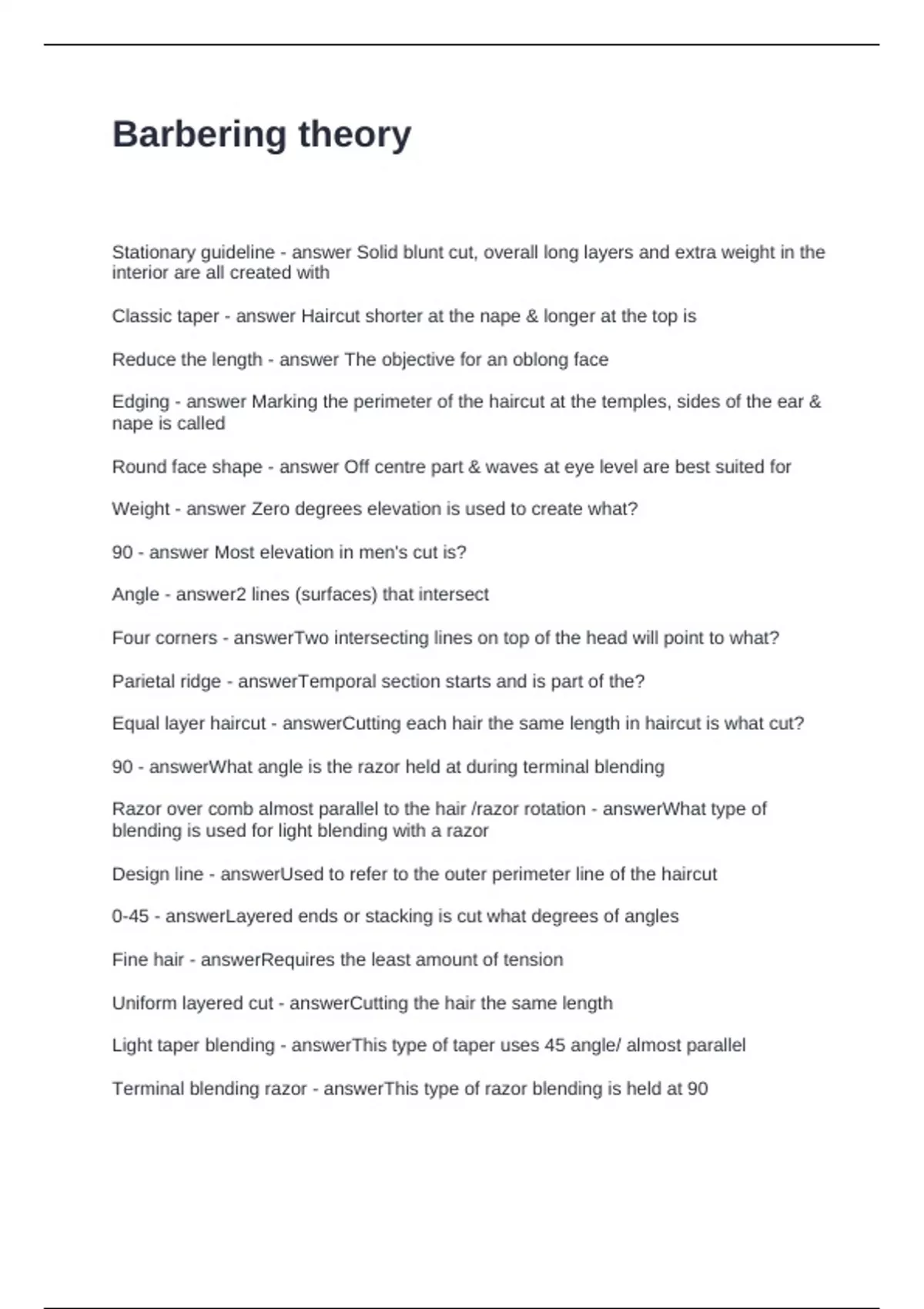 90 - answerWhat angle is the razor held at during terminal blending