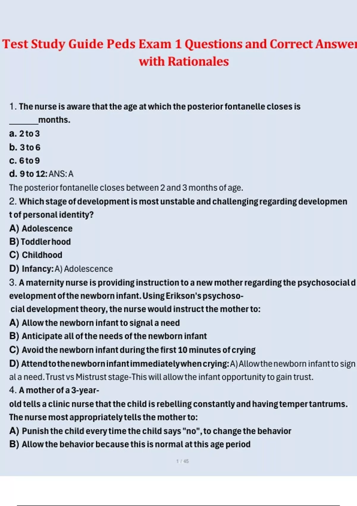 Peds exam study guide Pediatric nursing exam prep Peds exam questions Correct answers for pediatric exam Pediatric test rationales Study guide for pediatrics exam Peds exam 1 questions Pediatric nursing test prep Peds exam correct answers Peds exam with rationales Pediatric test questions Peds exam study material Pediatric exam prep guide Answers to pediatric nursing exam Rationale for peds exam questions Pediatric nursing study questions Peds test preparation Peds exam practice questions Nursing peds exam guide Pediatrics test review Peds exam review questions Rationales for pediatric exam Peds exam preparation guide Study material for peds exam Pediatric exam sample questions Peds exam answer key Comprehensive peds exam guide Peds exam test prep Nursing school peds questions