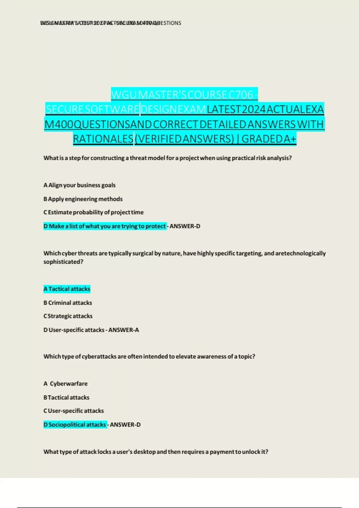 SECURE SOFTWARE DESIGN EXAM LATEST 2024 ACTUAL EXA