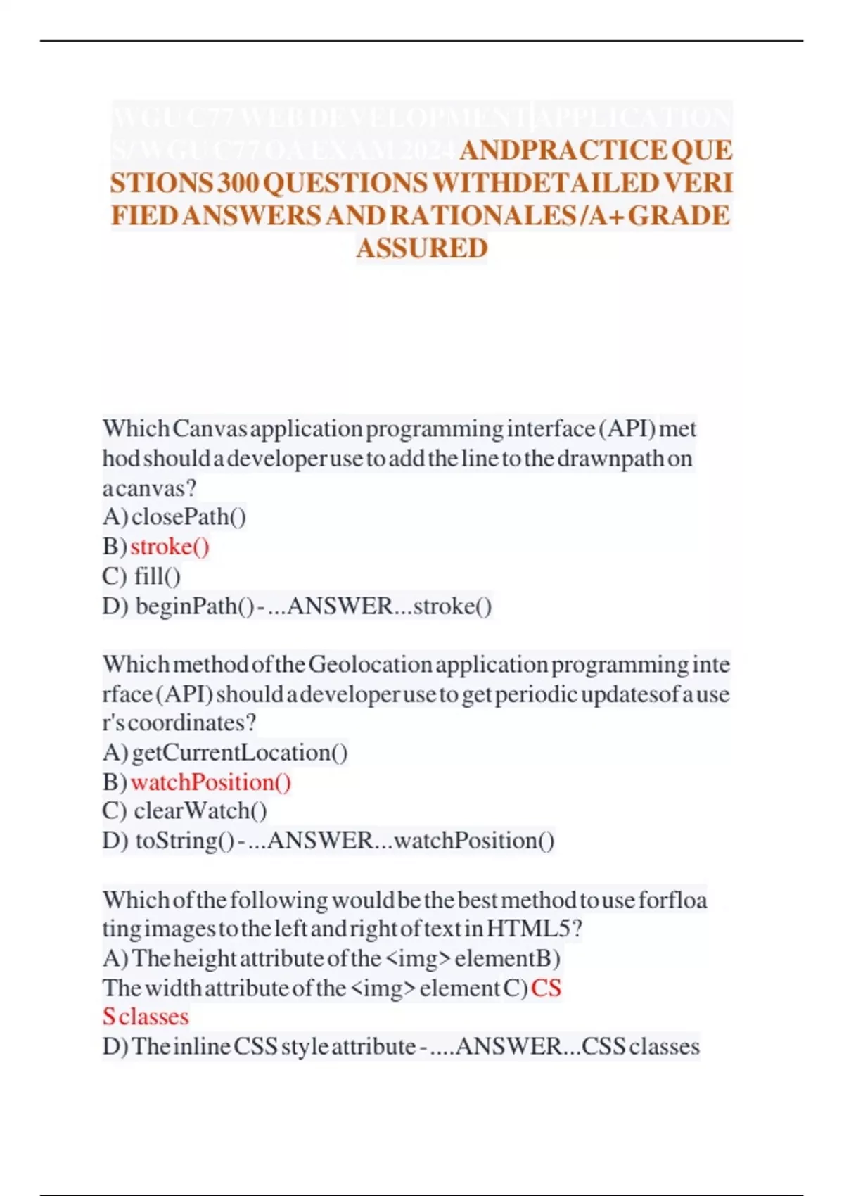 S/ WGU C77 OA EXAM 2024 ANDPRACTICE QUE