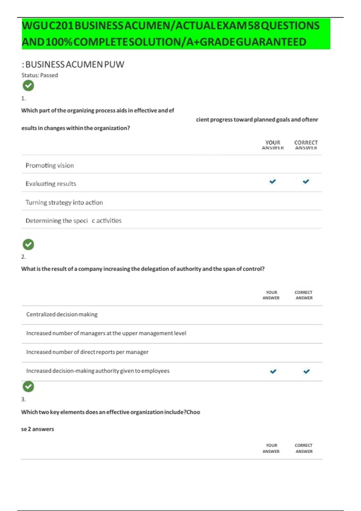 WGU C201 BUSINESS ACUMEN/ACTUAL EXAM 58 QUESTIONS