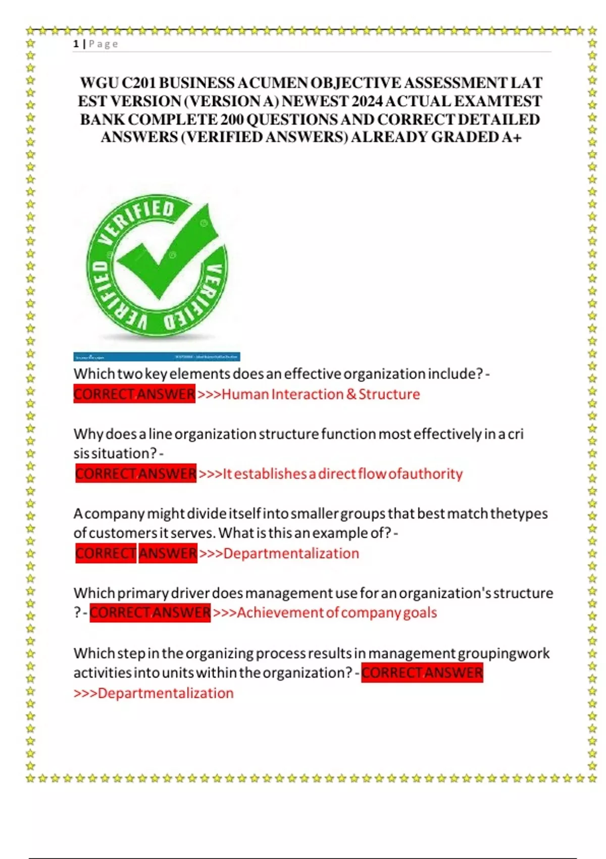 WGU C201 BUSINESS ACUMEN OBJECTIVE ASSESSMENT LAT