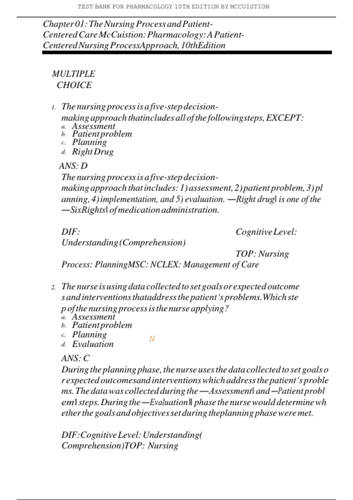 , TESTrBANKrFORrPHARMACOLOGYr10THrEDITIONrBYrMCCUISTION