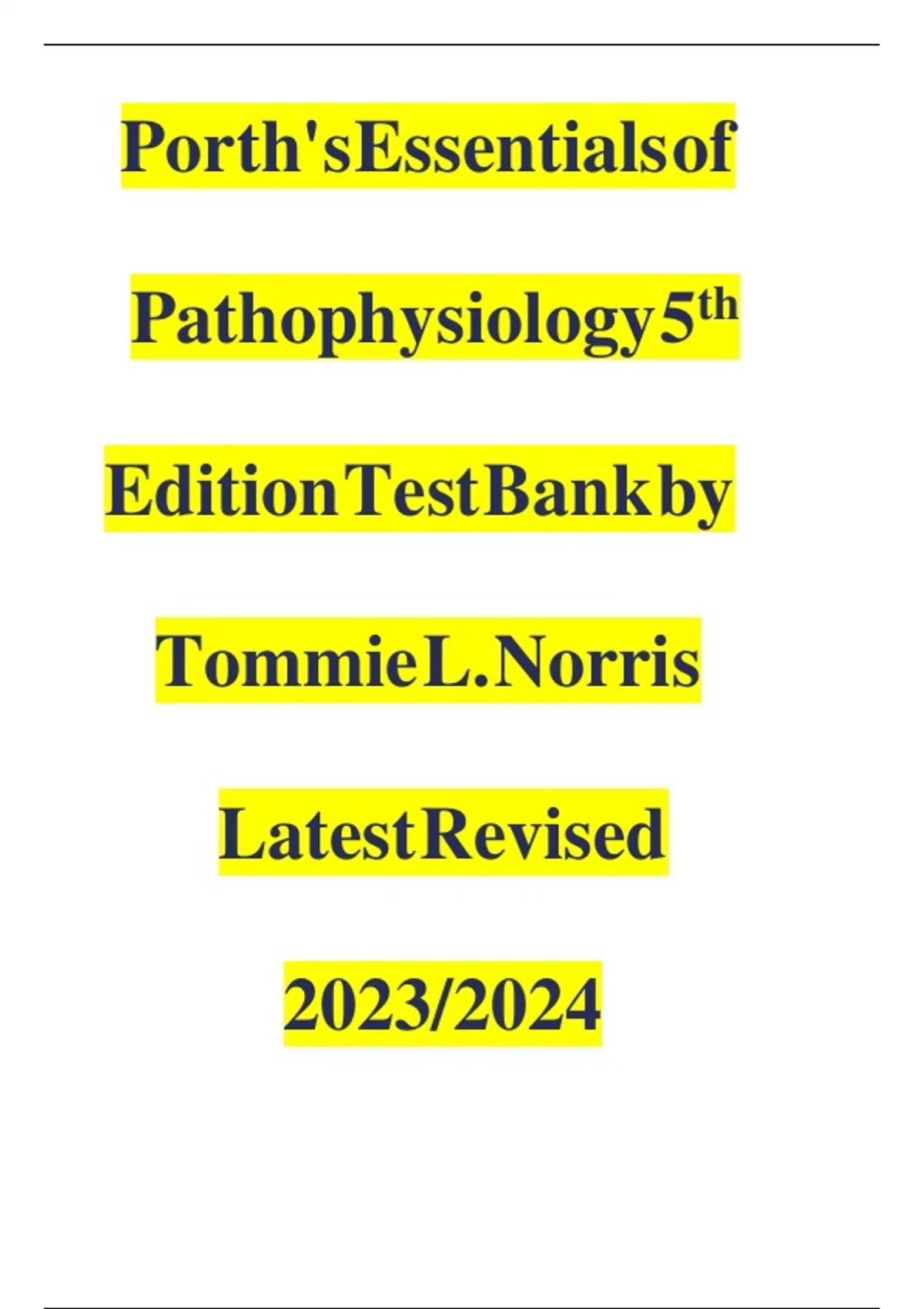 , TESTrBANKrFORrPORTH'SrPATHOPHYSIOLOGYr10THrEDITIONrBYrNORRIS
