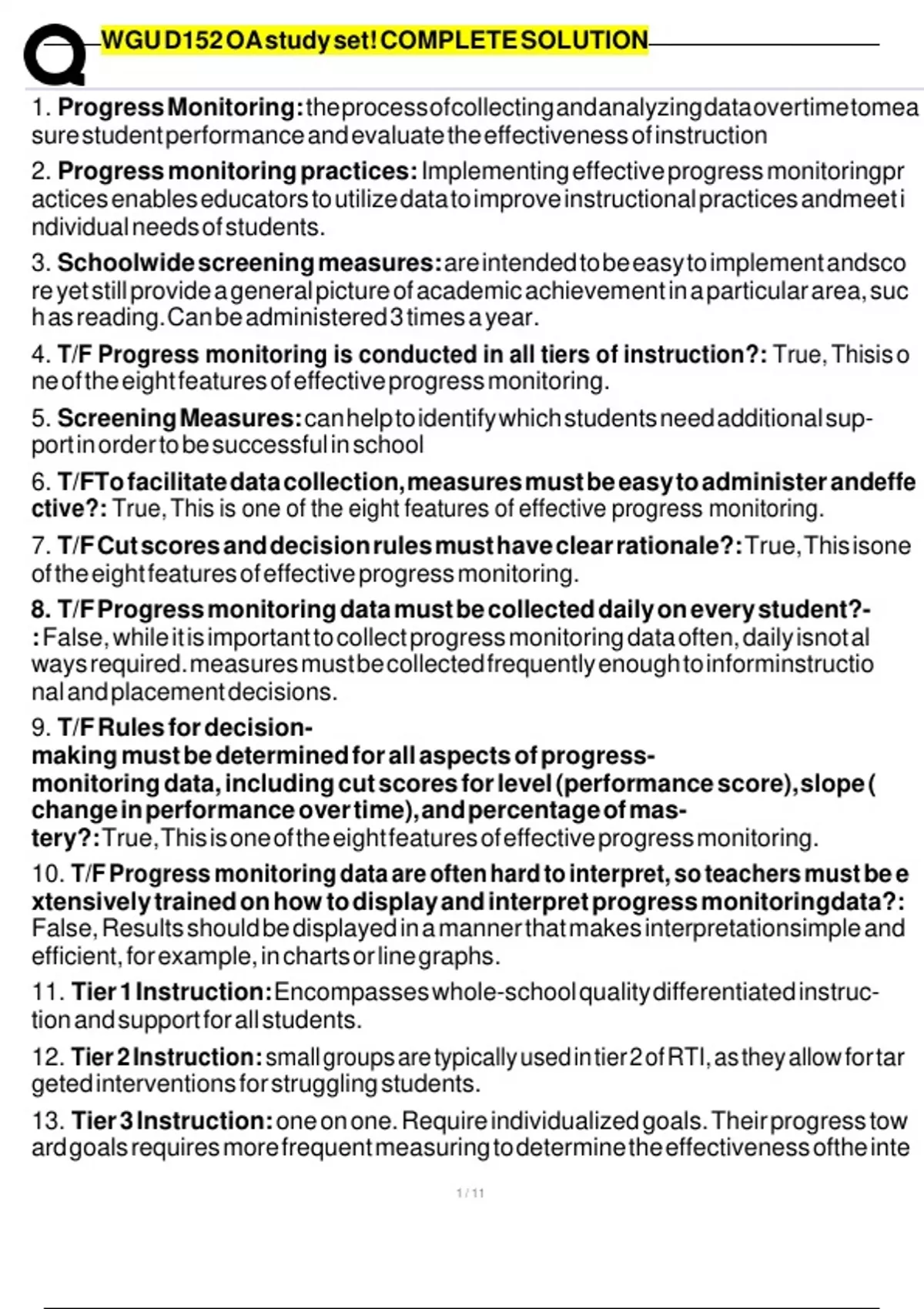 10. T/F Progress monitoring data are often hard to interpret, so teachers must be e