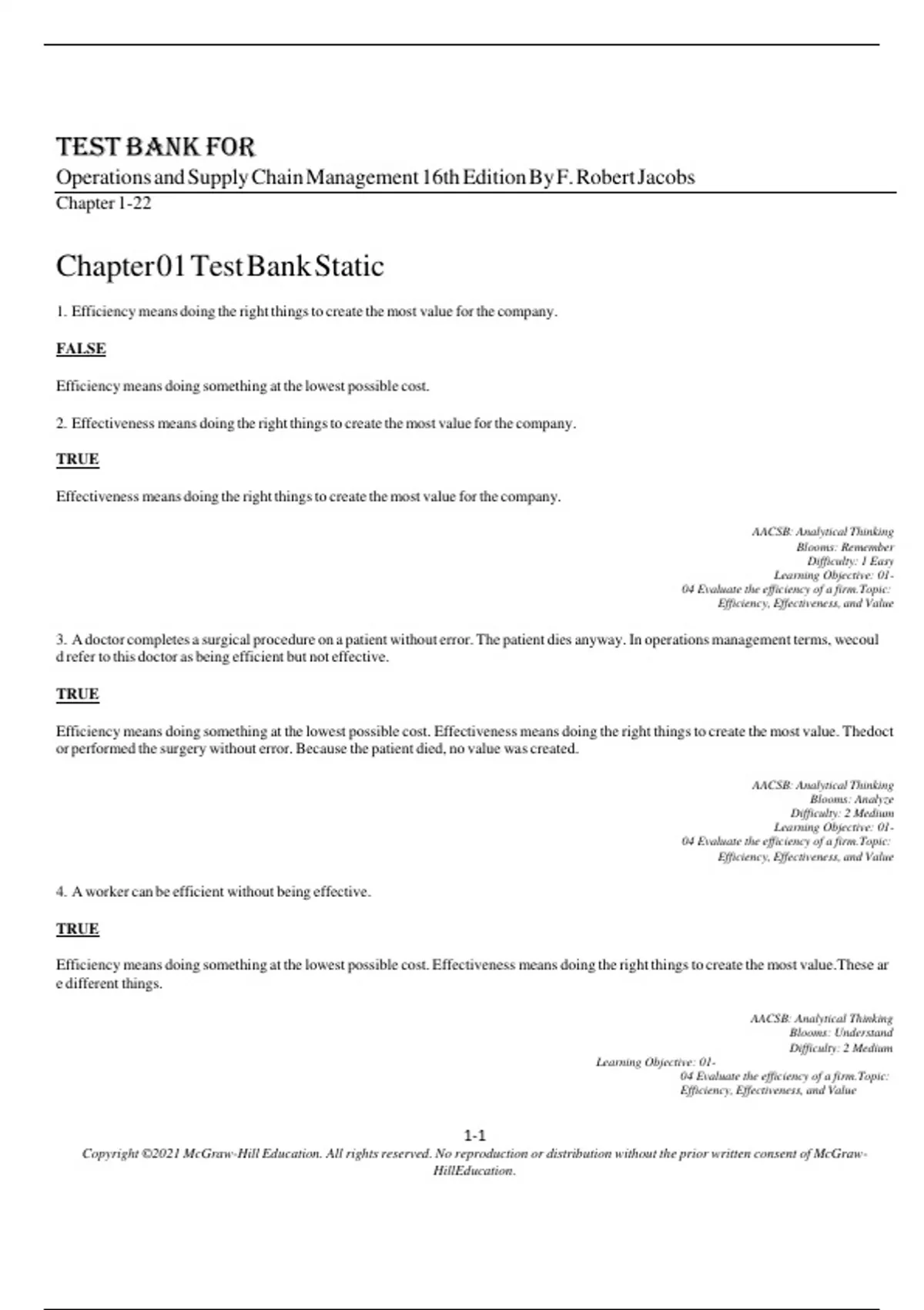 Test bank for operations and supply chain management 16th edition by f robert jacobs