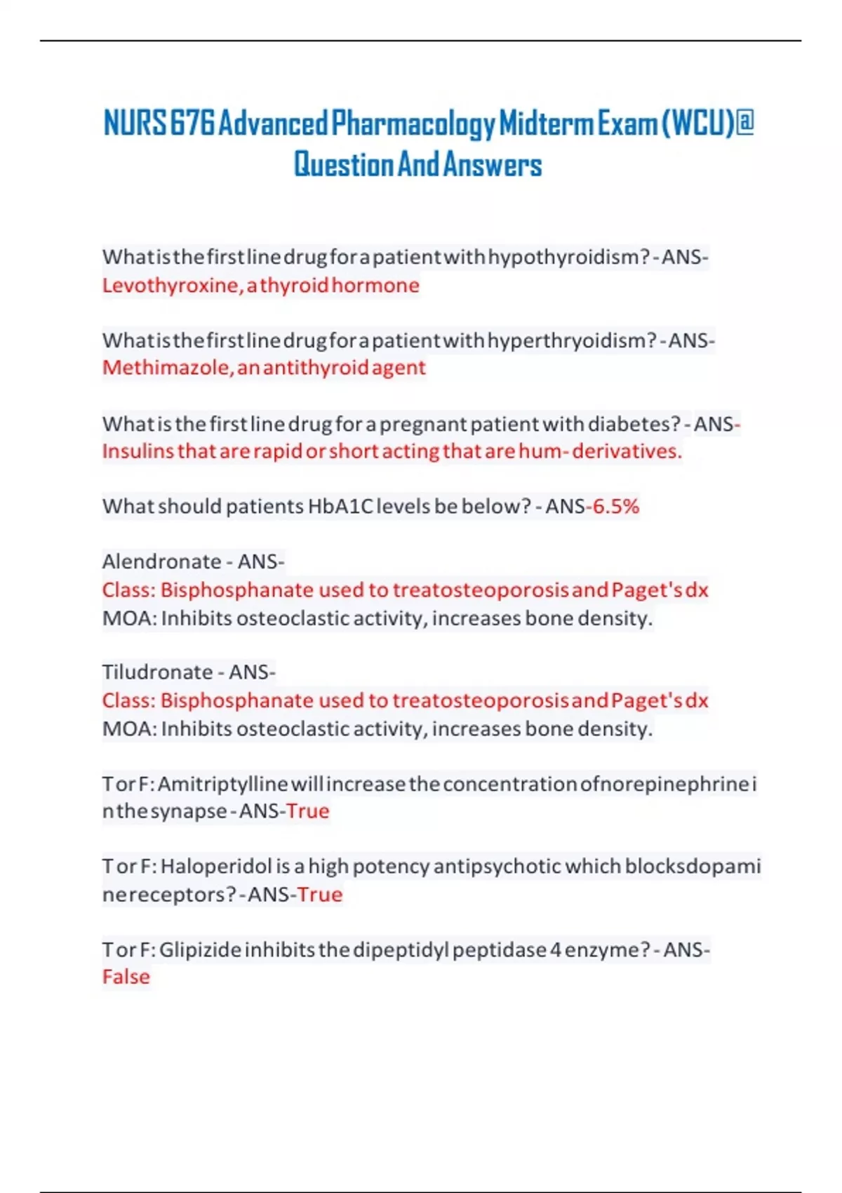 NURS 676 Advanced Pharmacology Midterm Exam (WCU)@