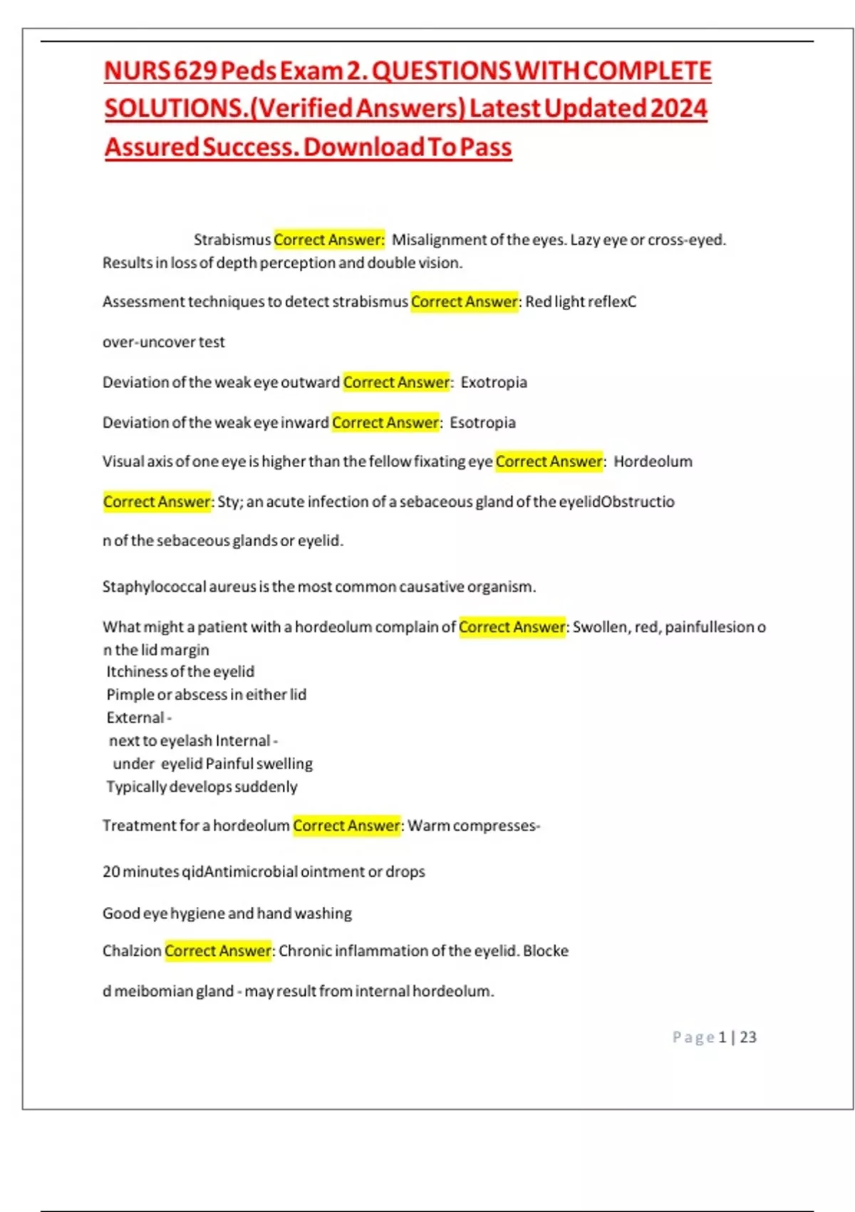 NURS 629 Peds Exam 2. QUESTIONS WITH COMPLETE