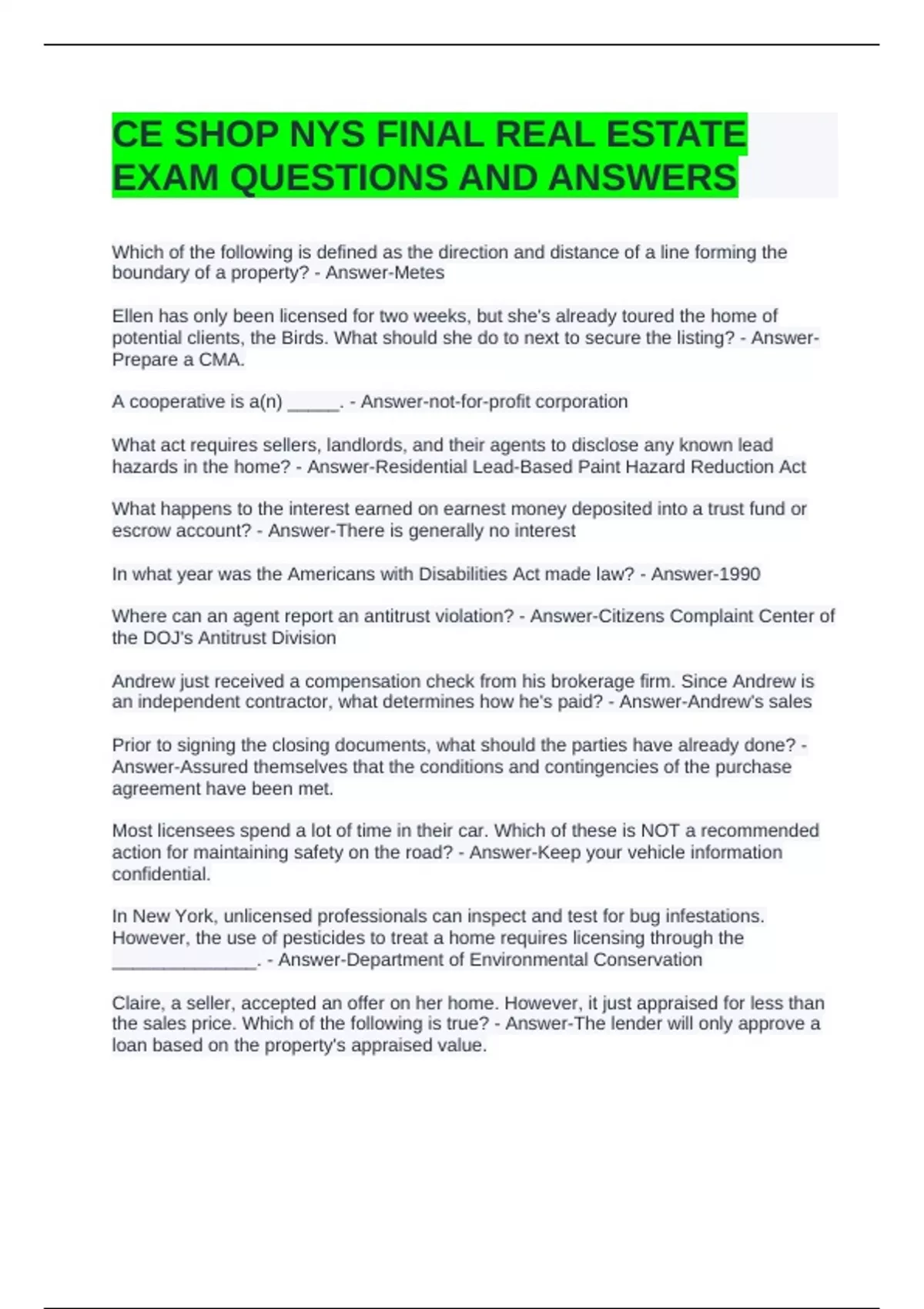 CE SHOP NYS FINAL REAL ESTATE