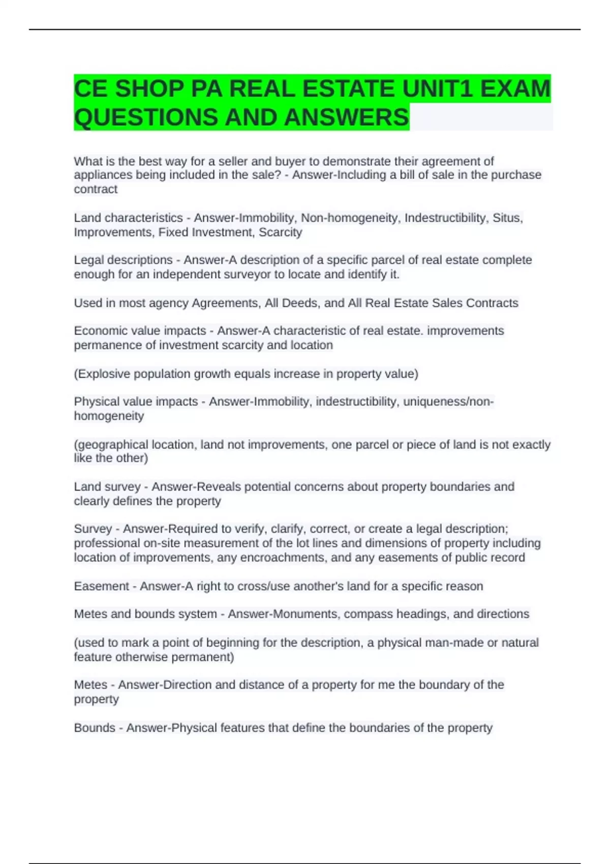 CE SHOP PA REAL ESTATE UNIT1 EXAM