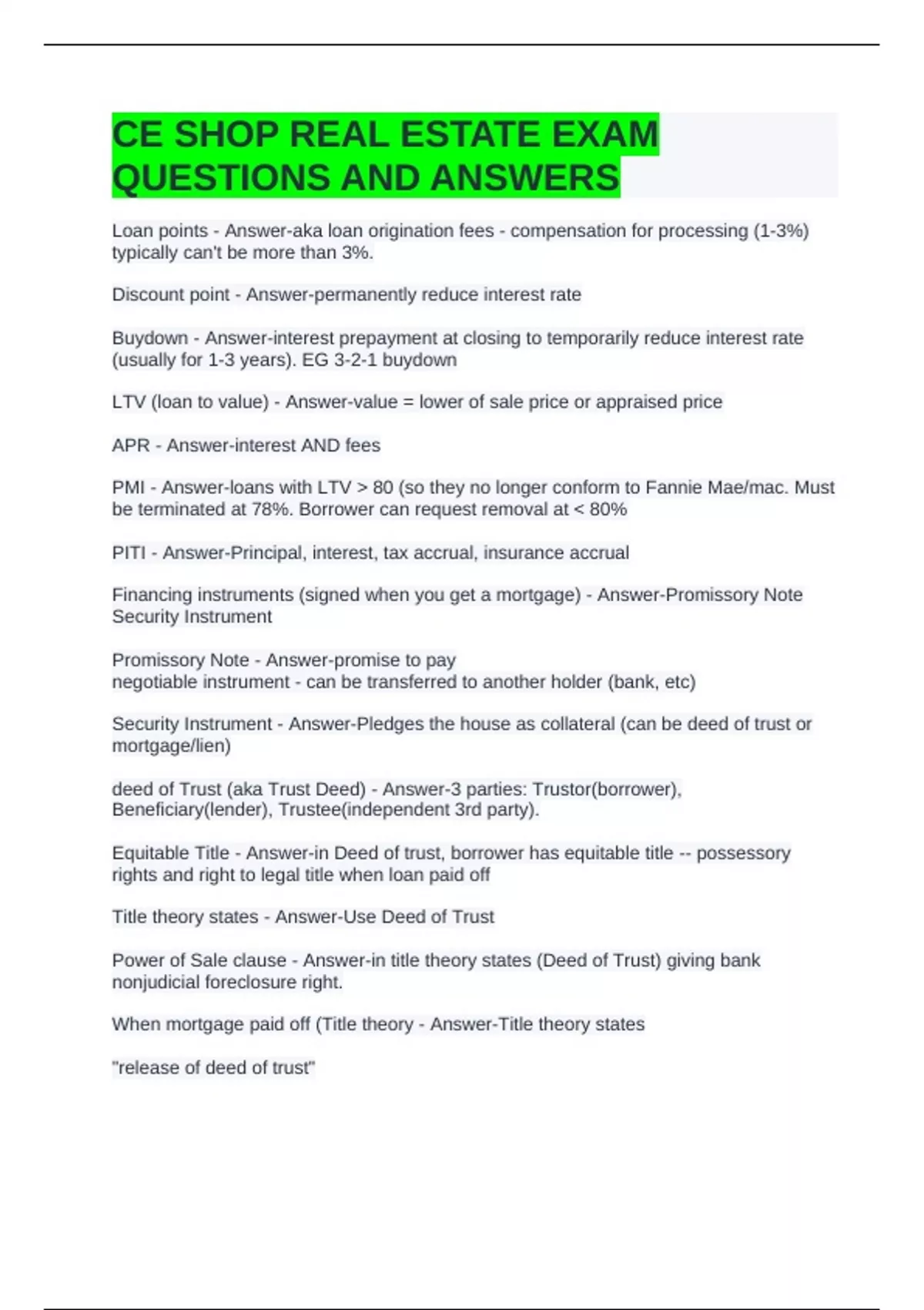 CE SHOP REAL ESTATE EXAM