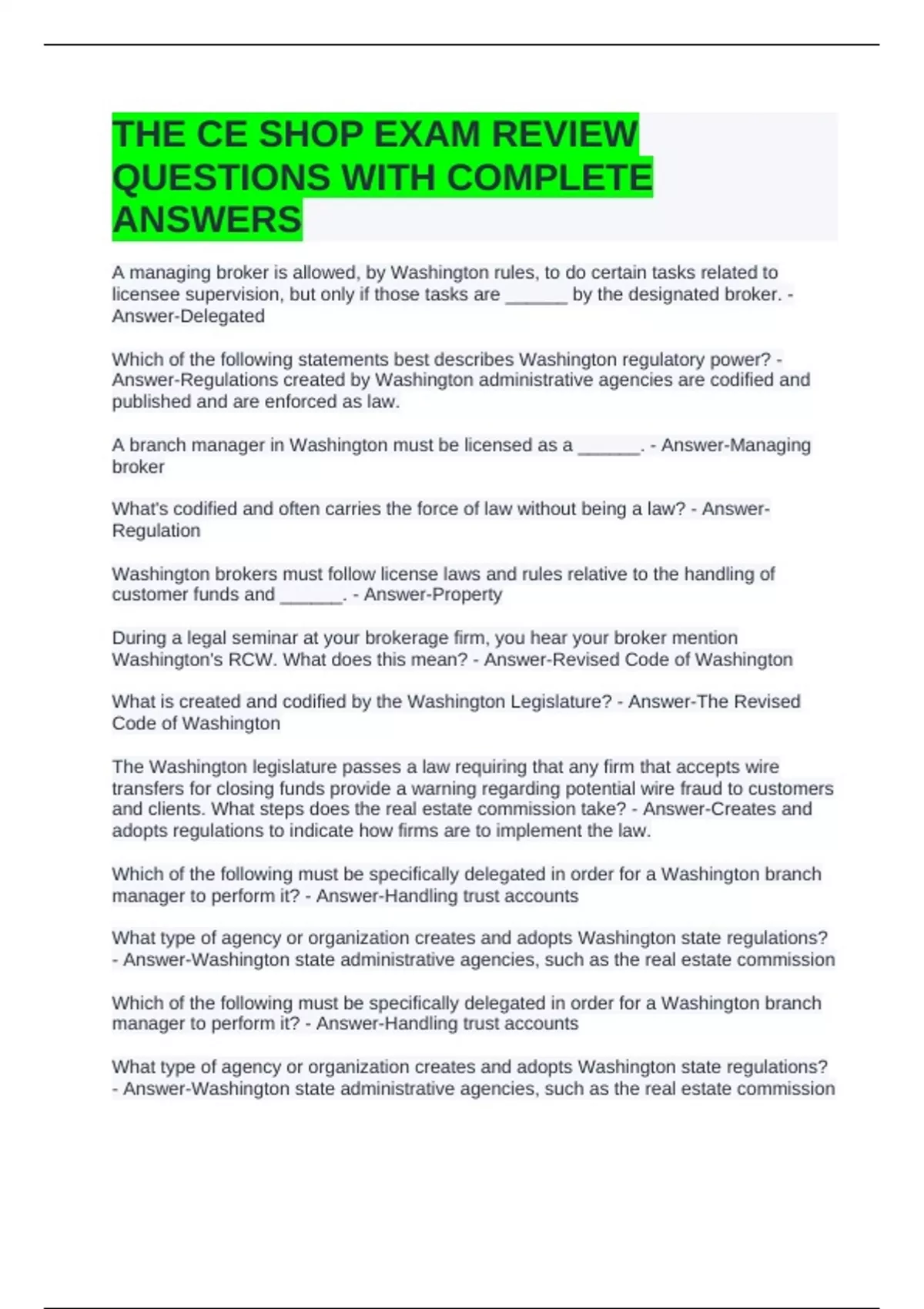 THE CE SHOP EXAM REVIEW