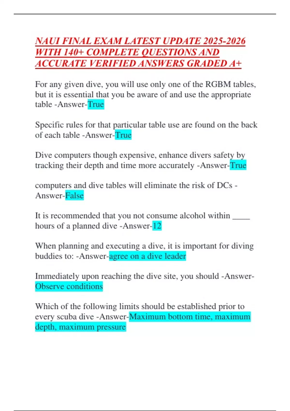 NAUI FINAL EXAM LATEST UPDATE 2025-2026