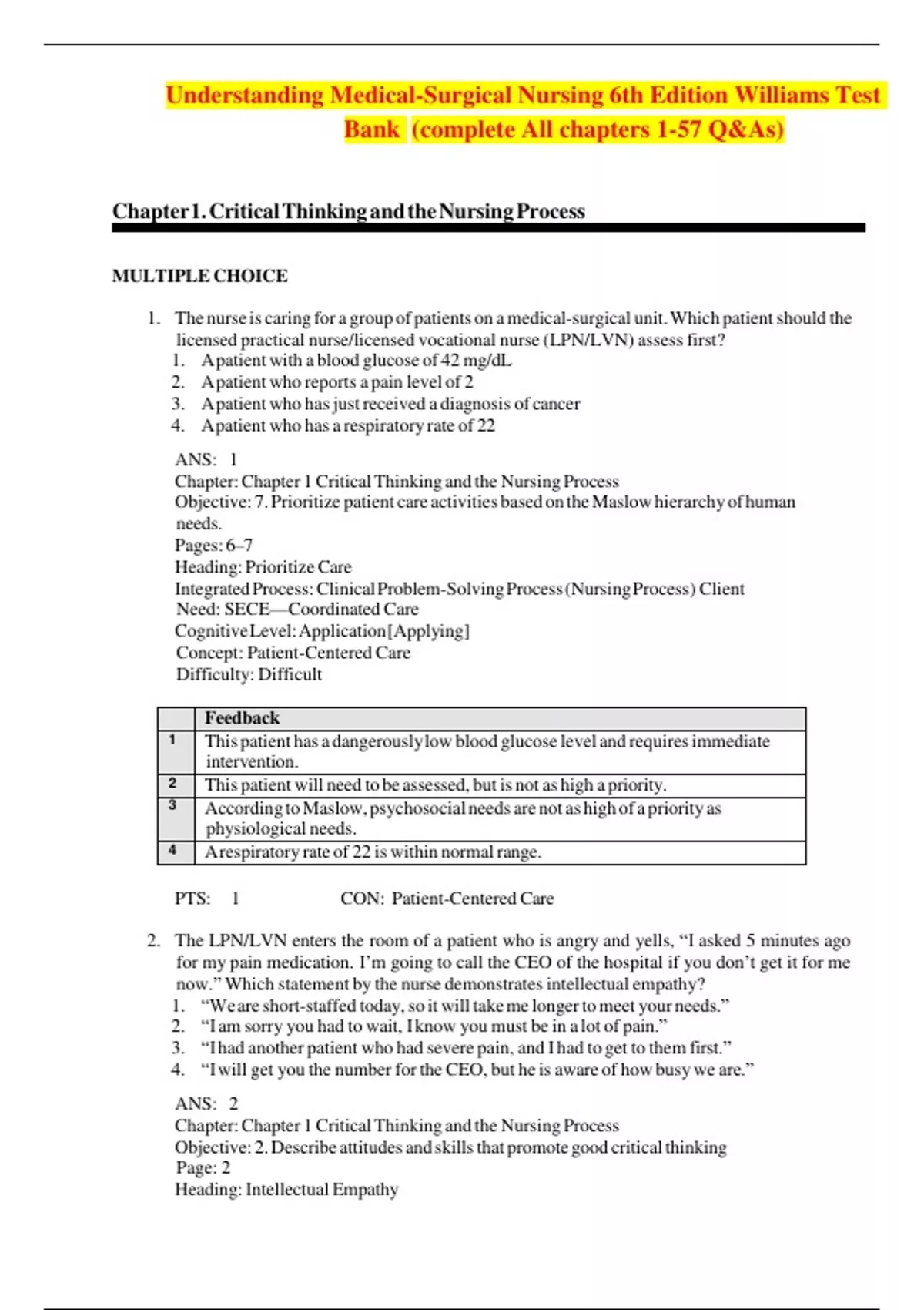 TEST BANK FOR UNDERSTANDING MEDICAL-SURGICAL NURSING 6TH EDITION BY WILLIAMS