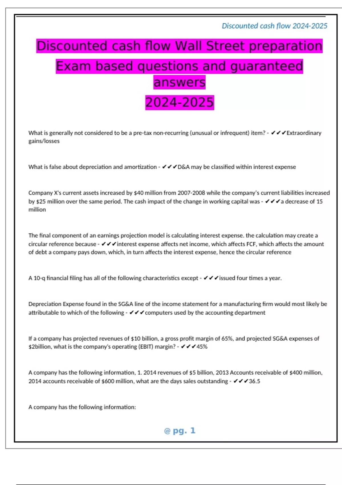 Discounted cash flow Wall Street preparation Exam based questions and guaranteed answers