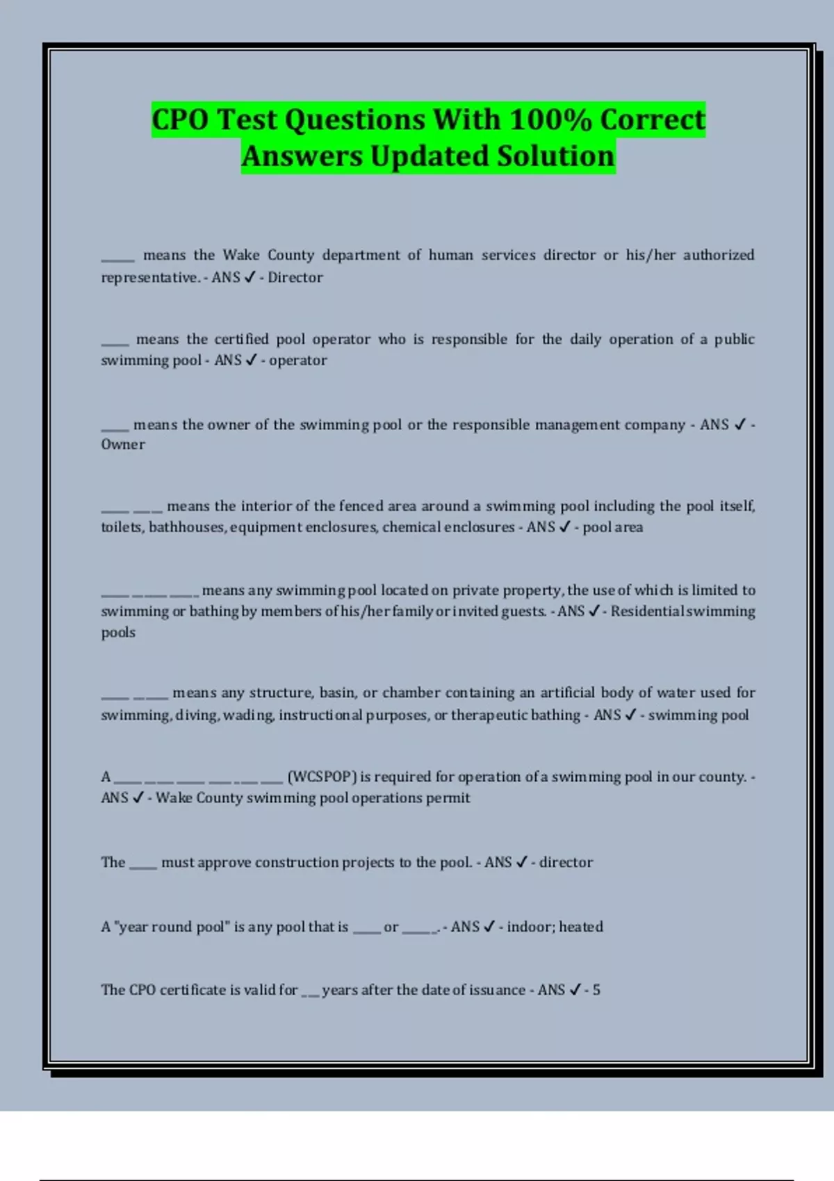 The CPO certificate is valid for ___ years after the date of issuance - ANS ✔ - 5
