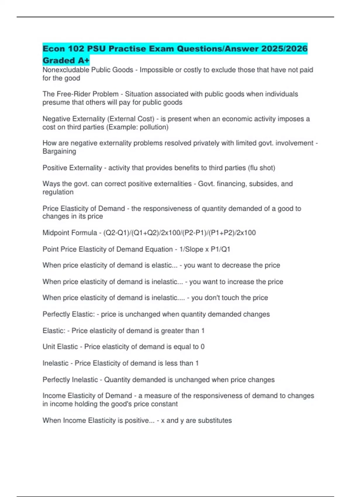 Econ 102 PSU Practise Exam Questions/Answer 2025/2026