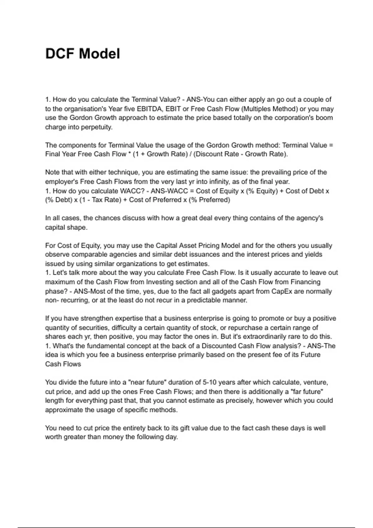 1. What's the fundamental concept at the back of a Discounted Cash Flow analysis? - ANS-The