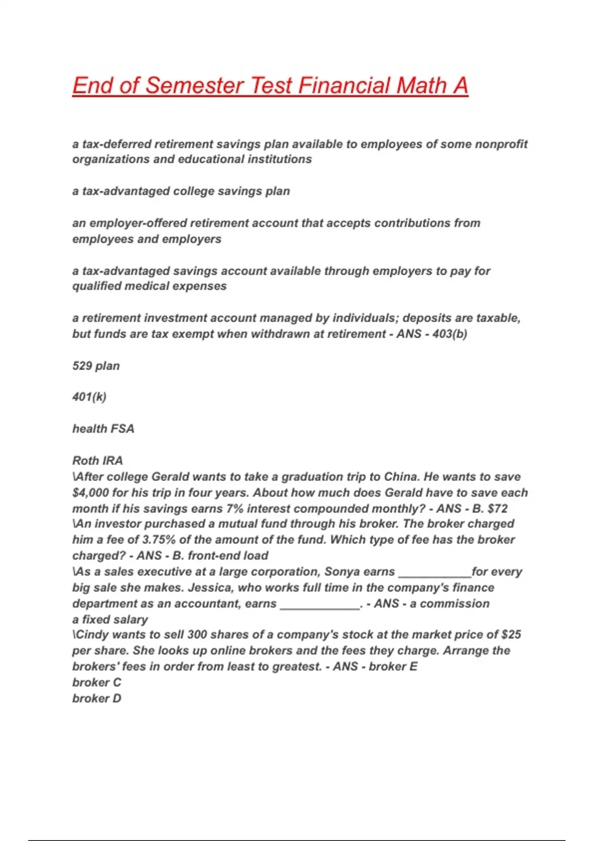End of Semester Test Financial Math A