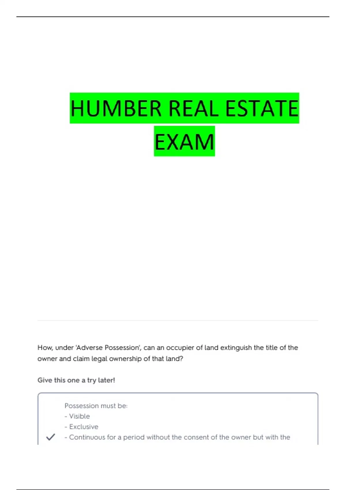 Humber Real Estate - Course 1, Module 3 questions and answers