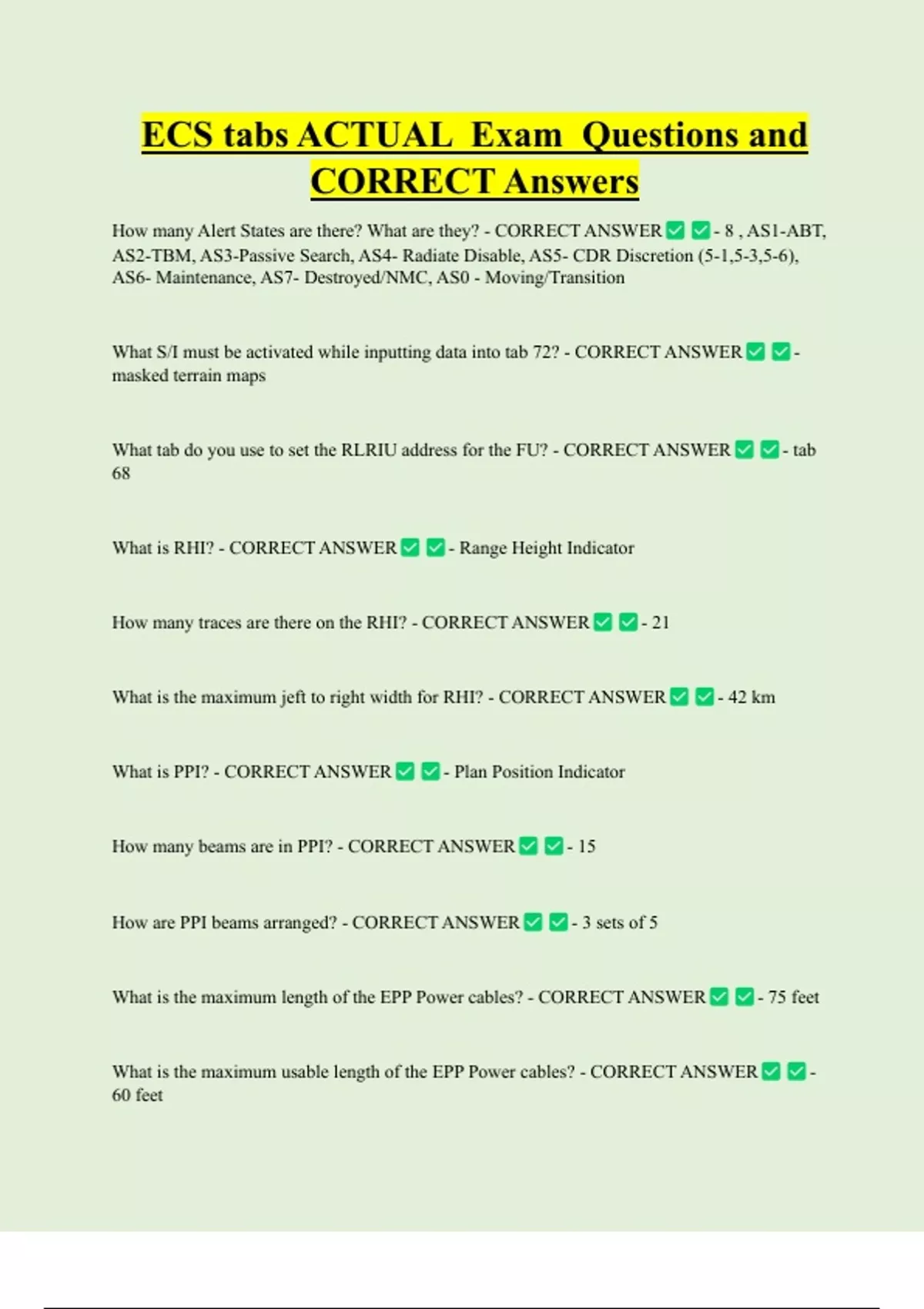 CORRECT Answers