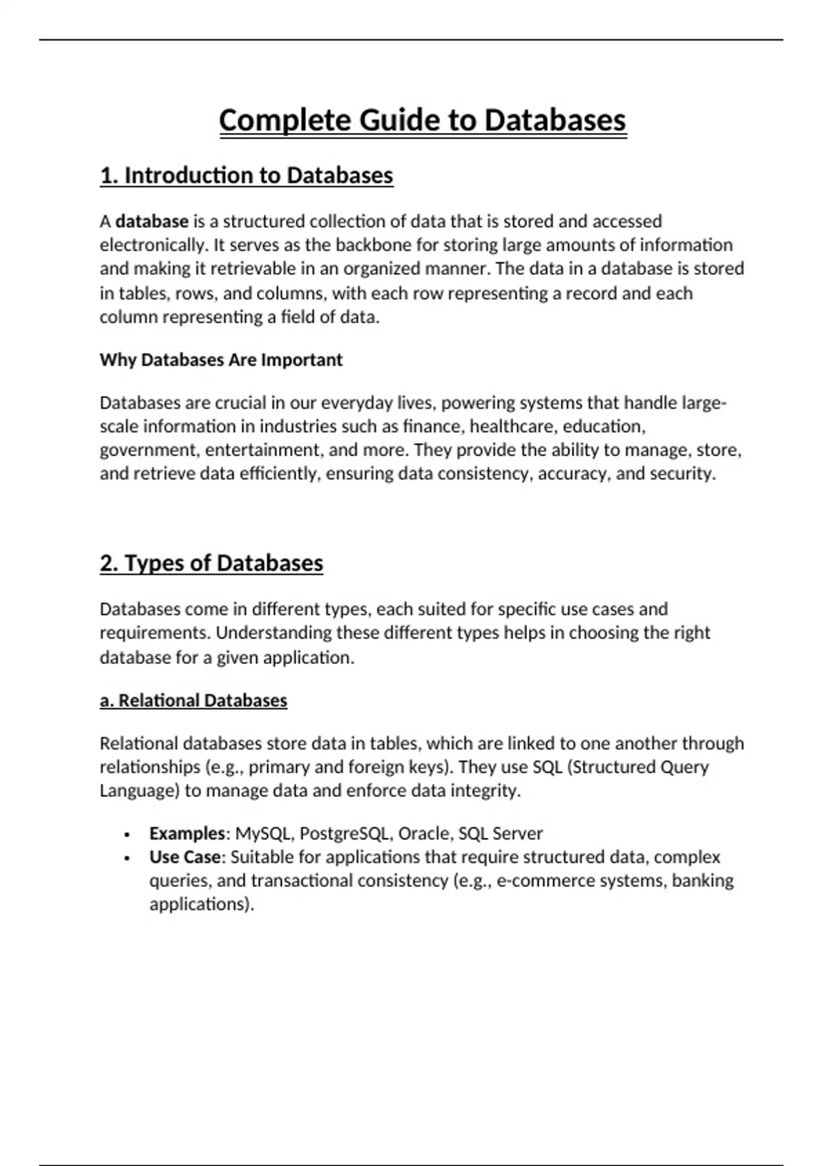 Examples: MySQL, PostgreSQL, Oracle, SQL Server