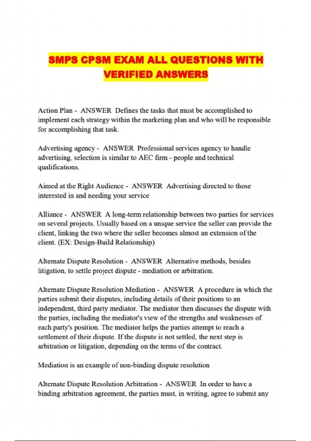 ALL SMPS CPSM PACKAGED EXAMS LATEST UPDATED