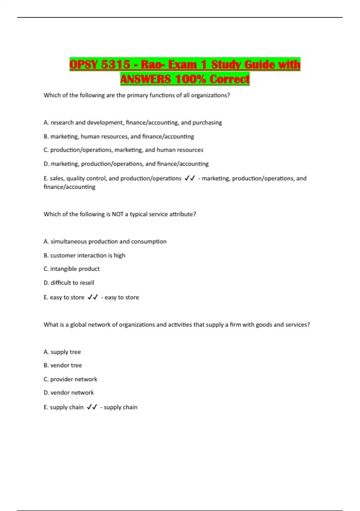 OPSY 5315 - Rao- Exam 1 Study Guide with ANSWERS 100% Correct