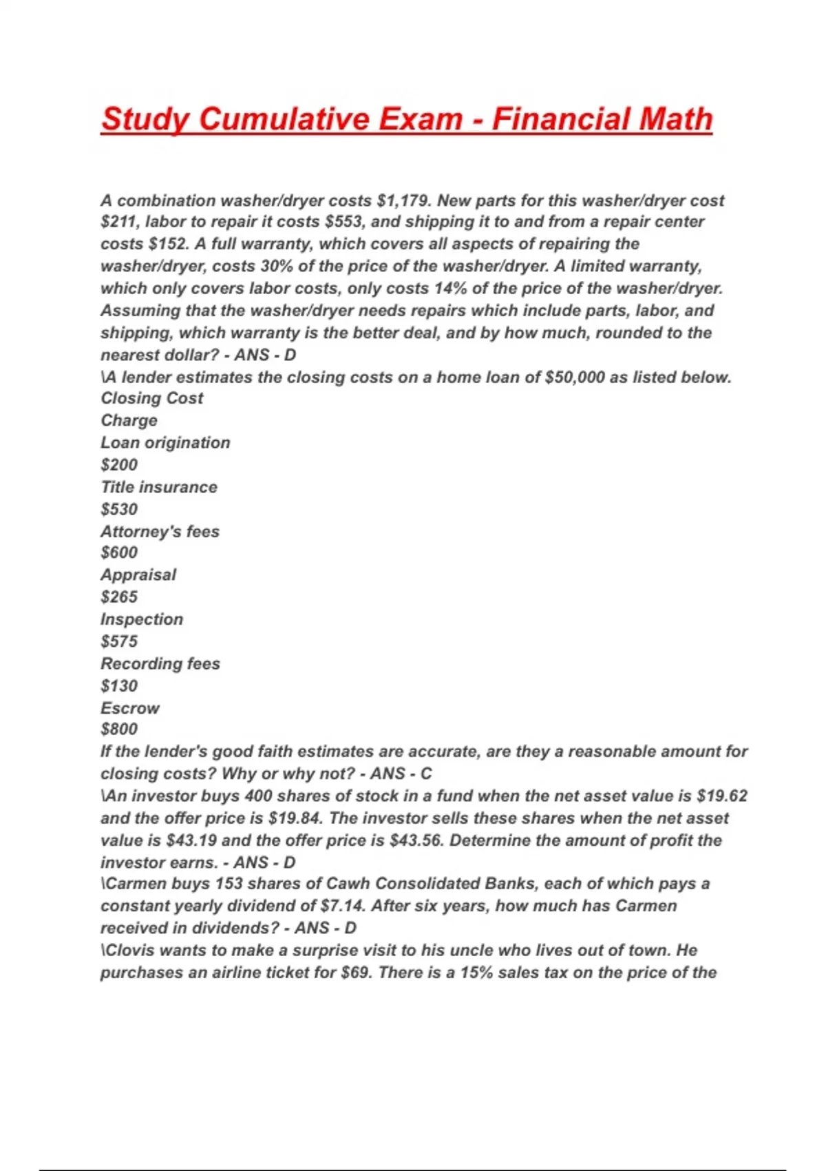 closing costs? Why or why not? - ANS - C