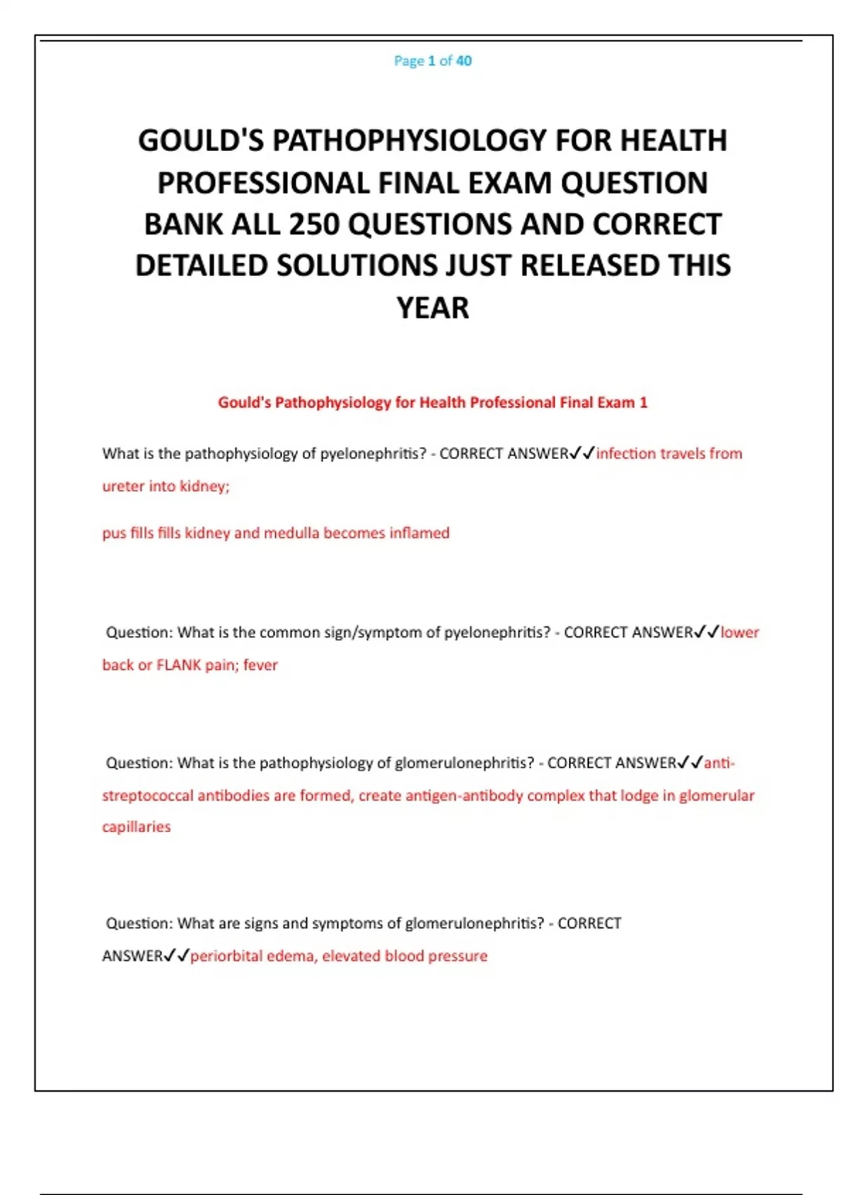 Gould's Pathophysiology for Health Professional Final Exam 1