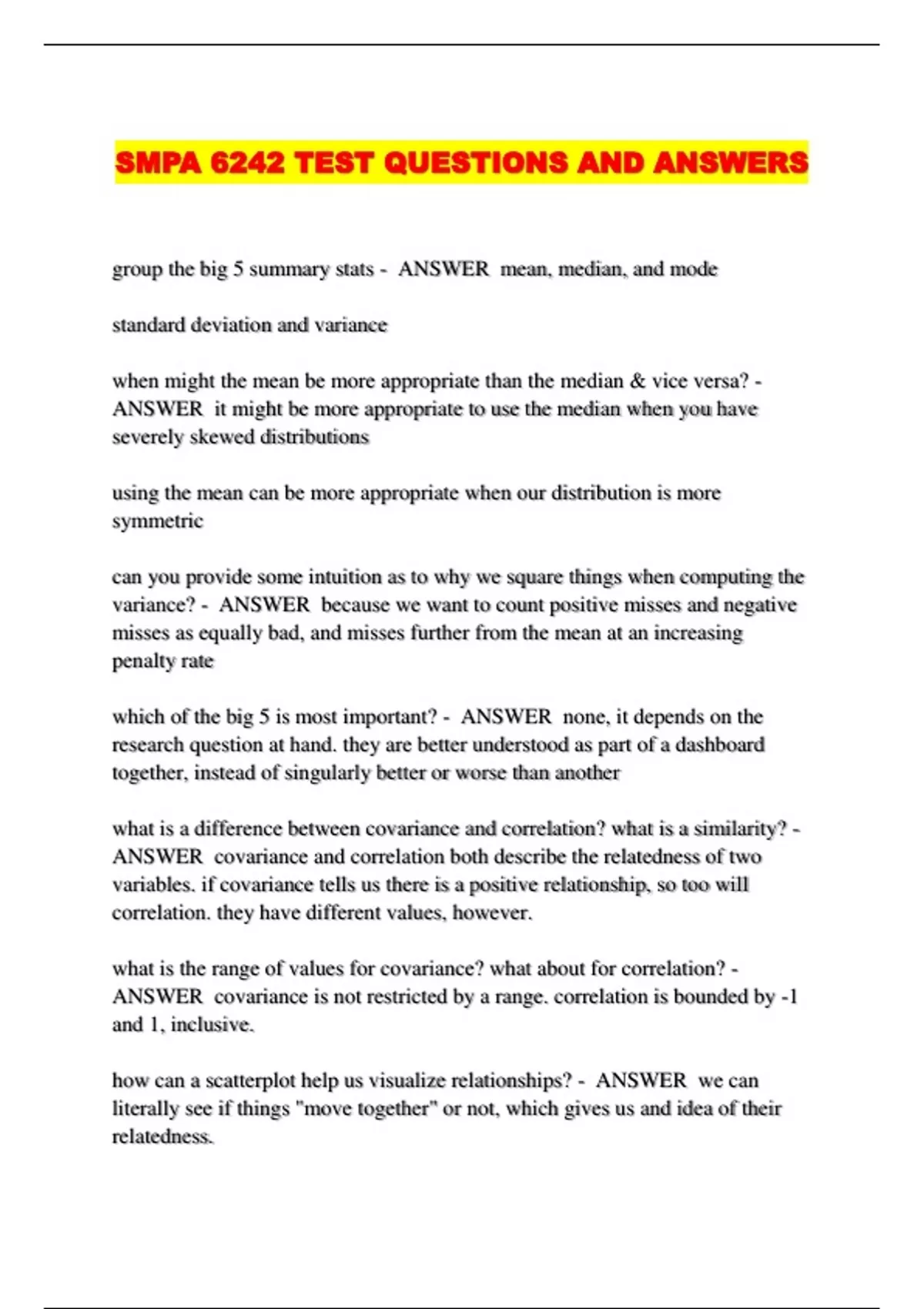 SMPA 6242 TEST QUESTIONS AND ANSWERS