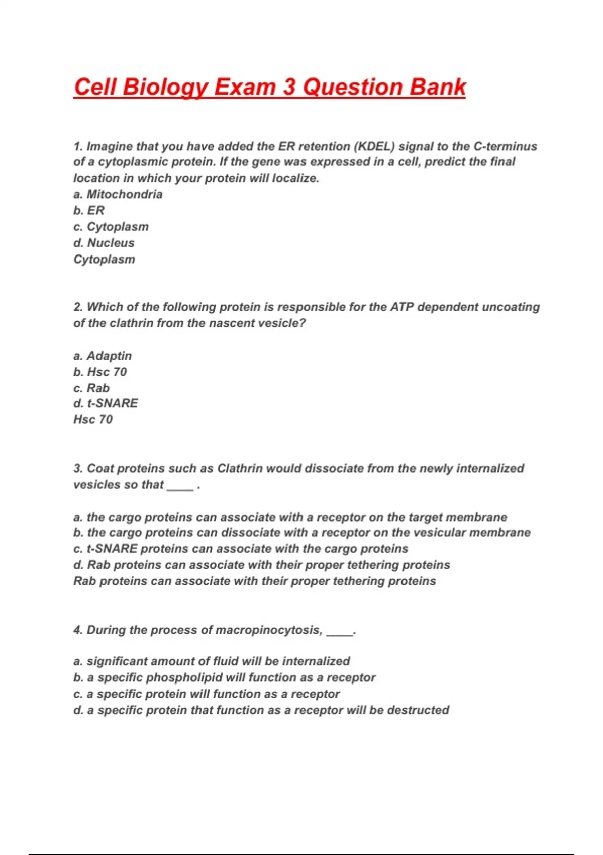 1. Imagine that you have added the ER retention (KDEL) signal to the C-terminus