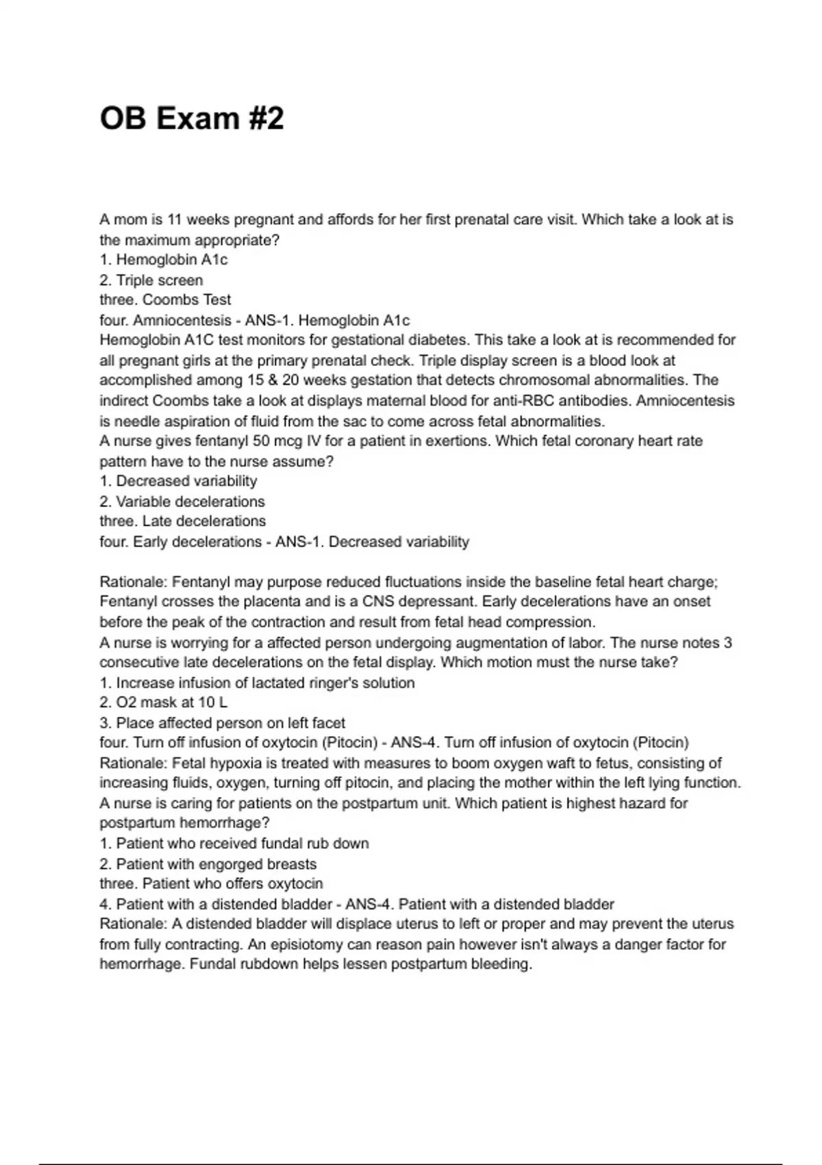 Fentanyl crosses the placenta and is a CNS depressant. Early decelerations have an onset