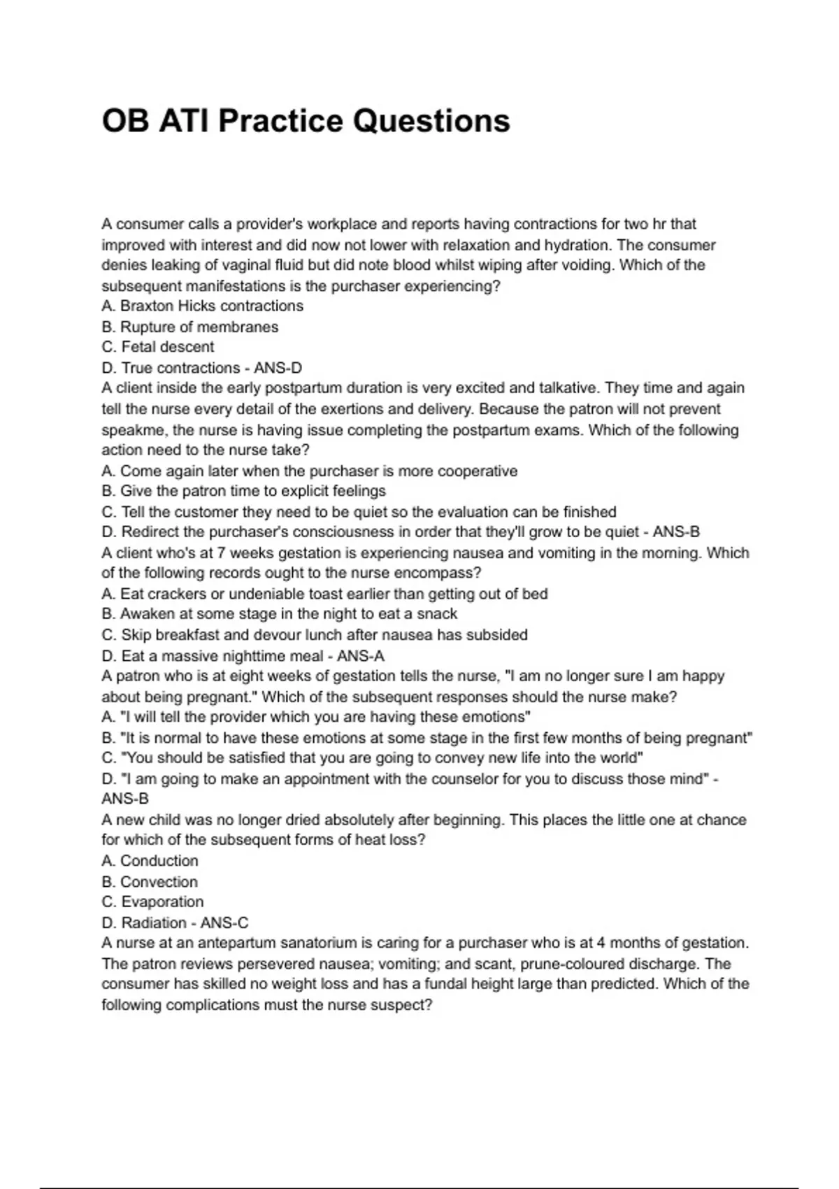 D. True contractions - ANS-D