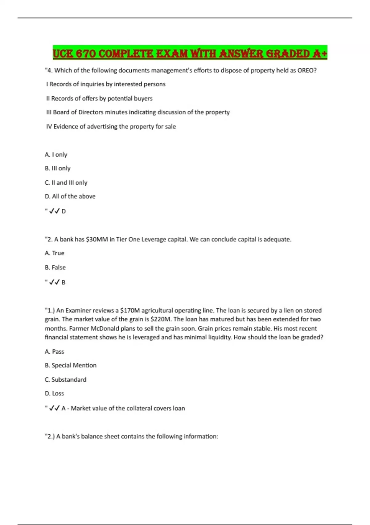 UCE 670 Complete Exam with Answer Graded A+