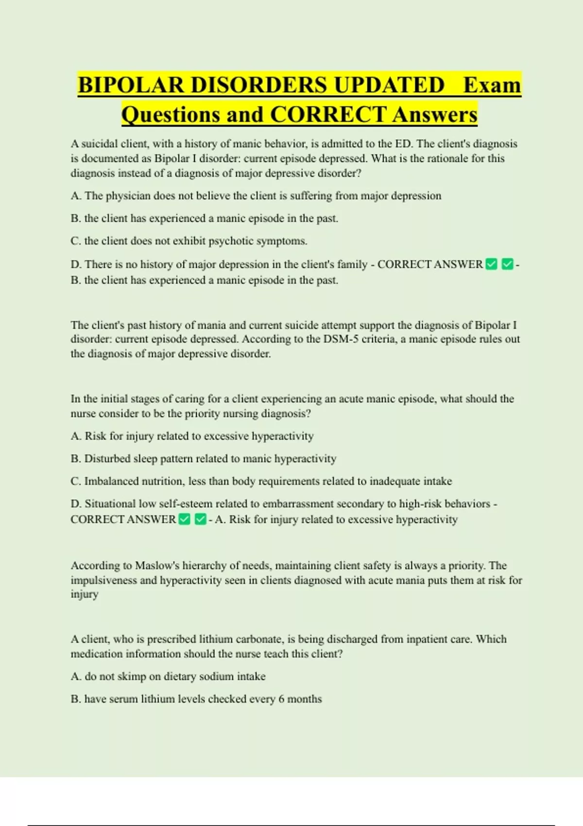 Questions and CORRECT Answers