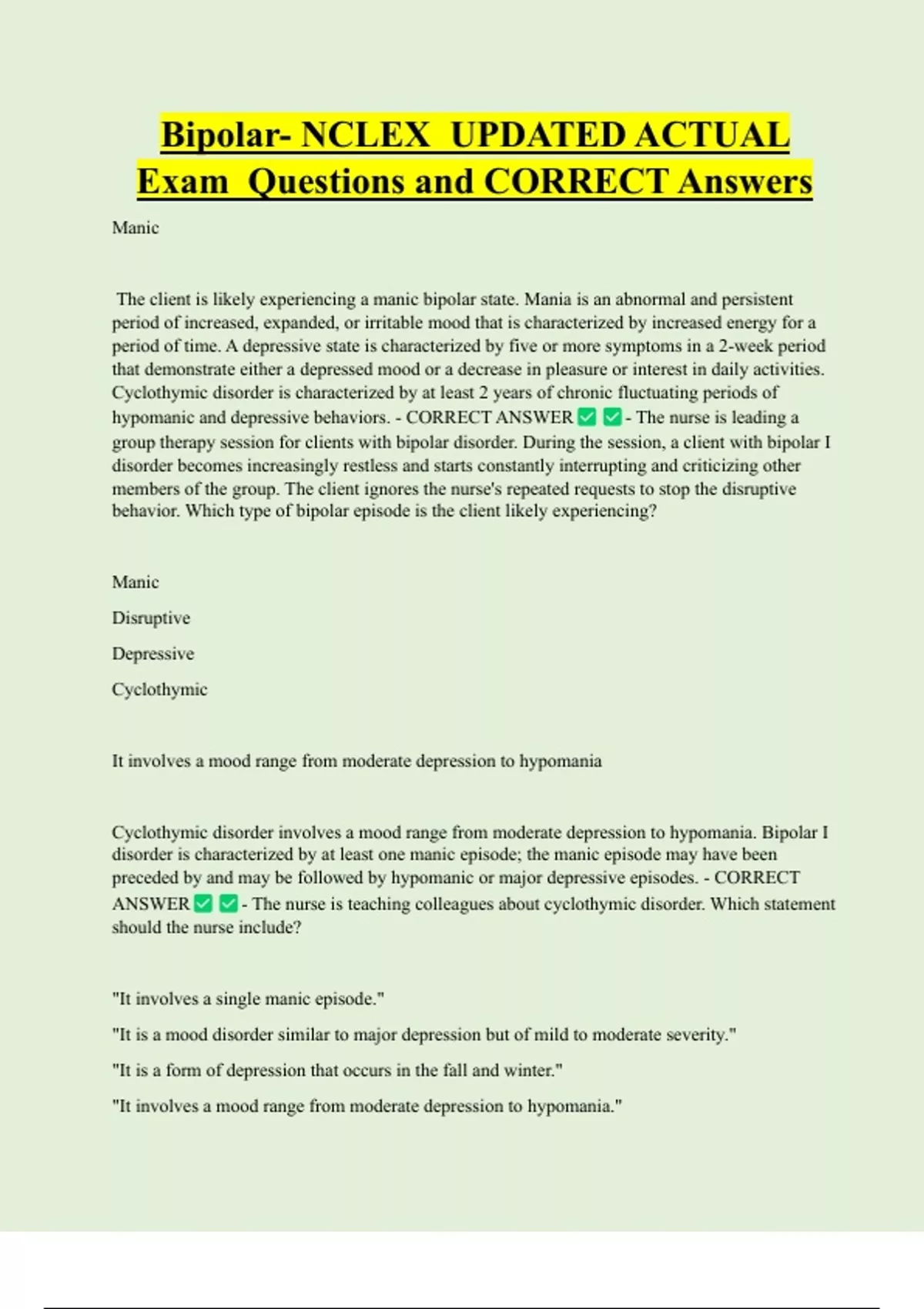 ANSWER - The nurse is teaching colleagues about cyclothymic disorder. Which statement