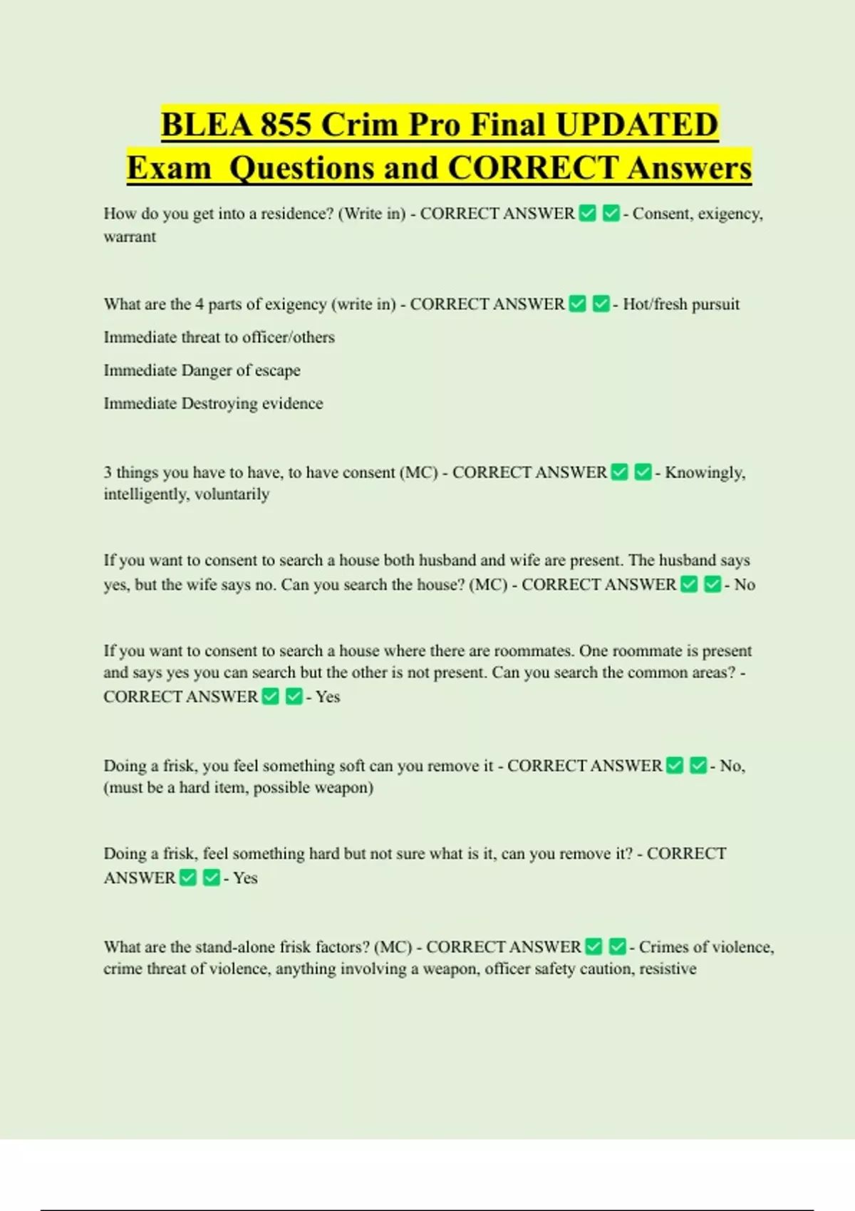 Exam Questions and CORRECT Answers