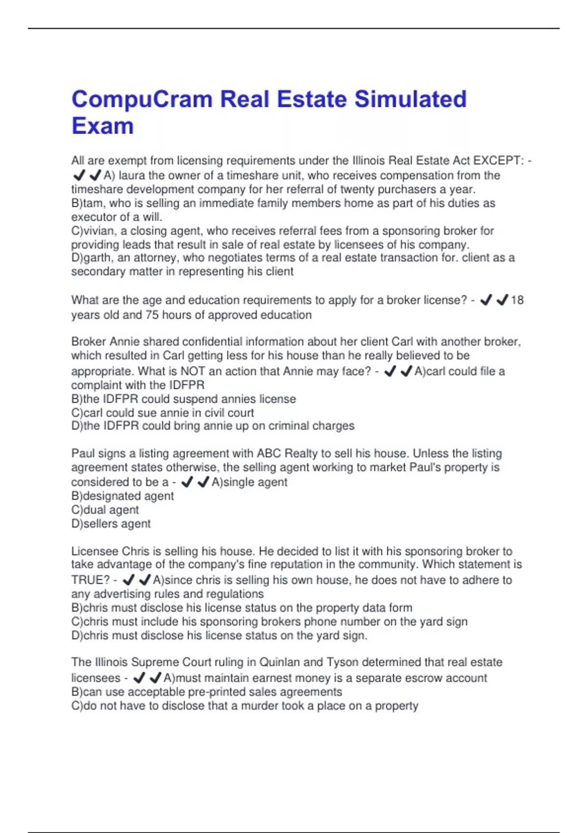TRUE? - ✔️✔️A)since chris is selling his own house, he does not have to adhere to