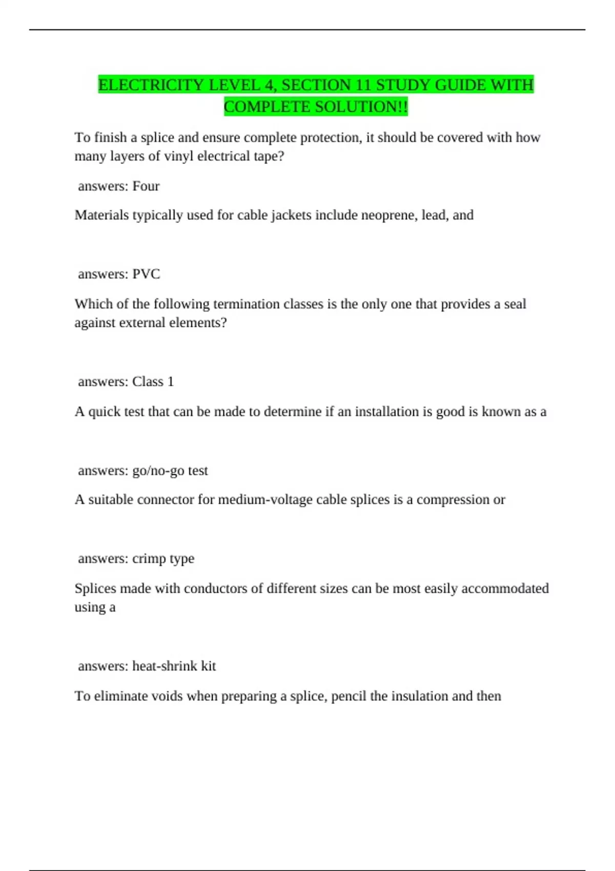 ELECTRICITY LEVEL 4, SECTION 11 STUDY GUIDE WITH