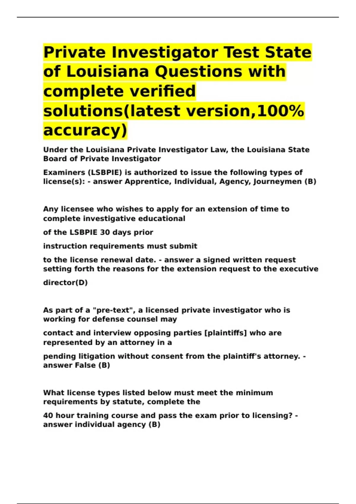 ,According to the Louisiana Private Investigator law, only this type of