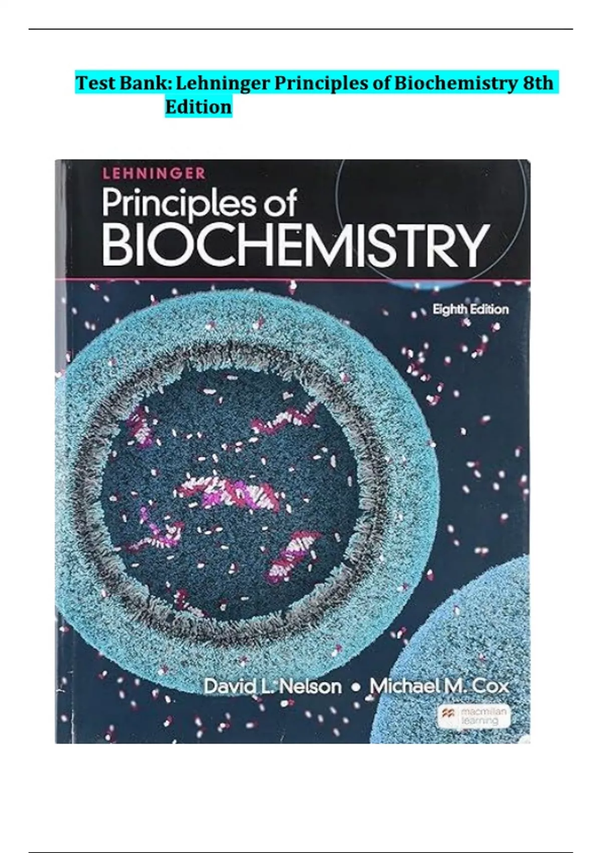 Test Bank: Lehninger Principles of Biochemistry 8th Edition