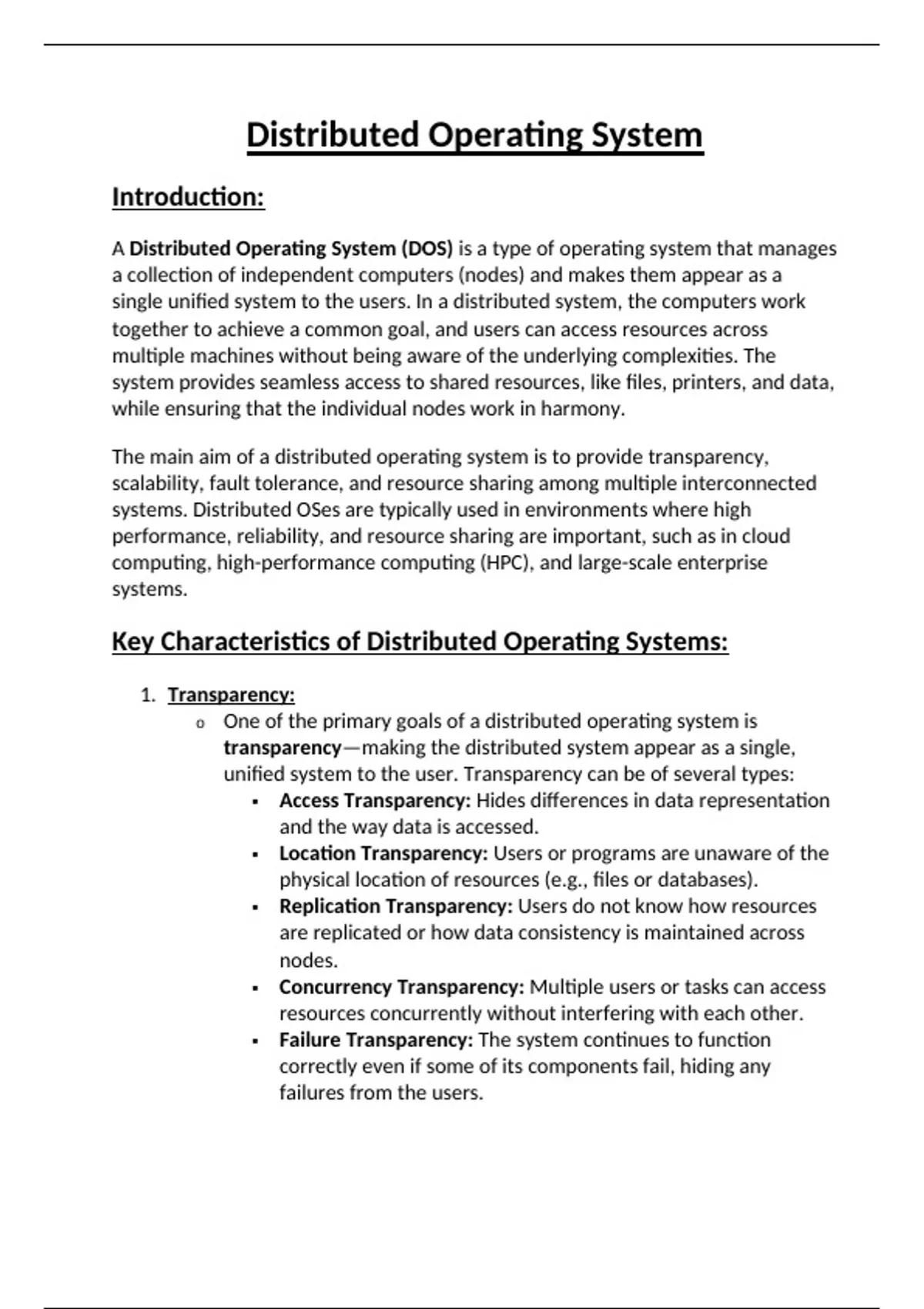 Key Characteristics of Distributed Operating Systems: