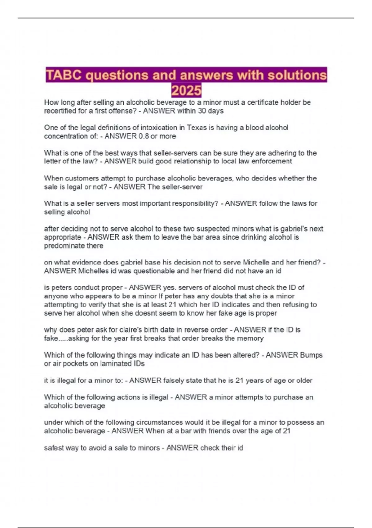 TABC questions and answers with solutions 2025