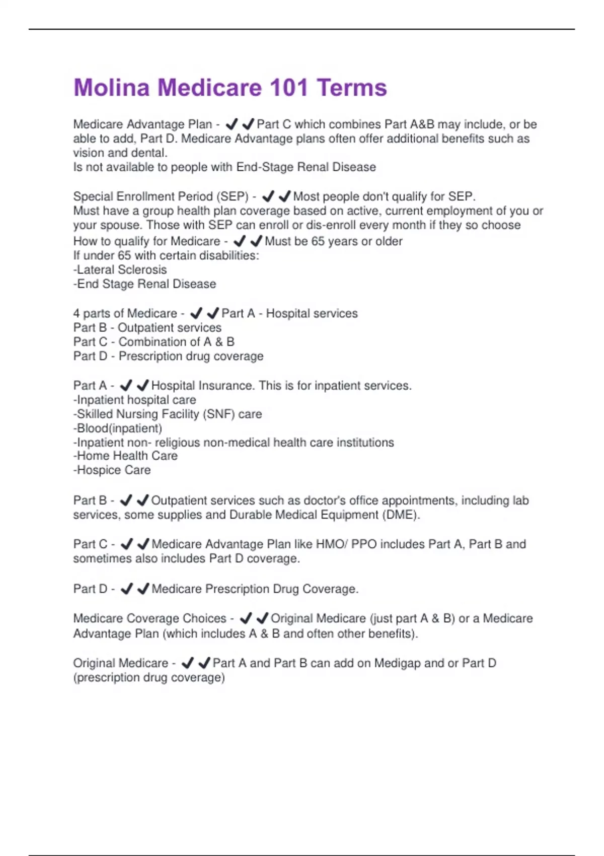 4 parts of Medicare - ✔️✔️Part A - Hospital services