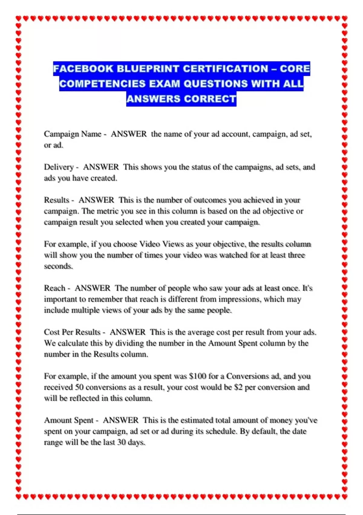 FACEBOOK BLUEPRINT CERTIFICATION – CORE COMPETENCIES EXAM QUESTIONS WITH ALL ANSWERS CORRECT....