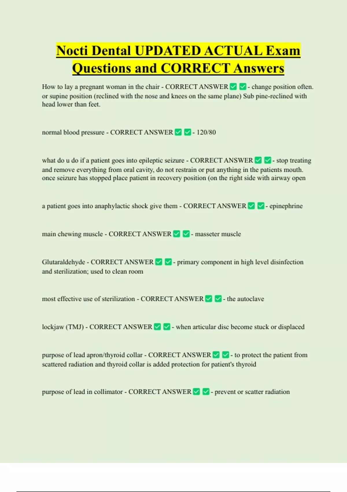 Nocti Dental UPDATED ACTUAL Exam Questions and CORRECT Answers