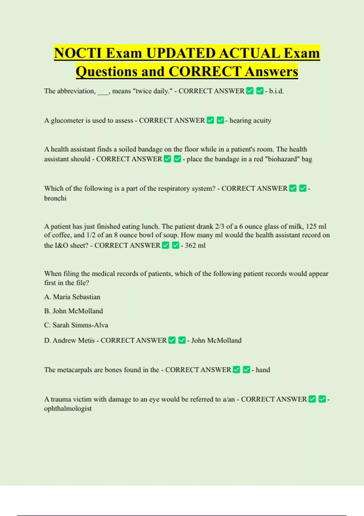 Questions and CORRECT Answers