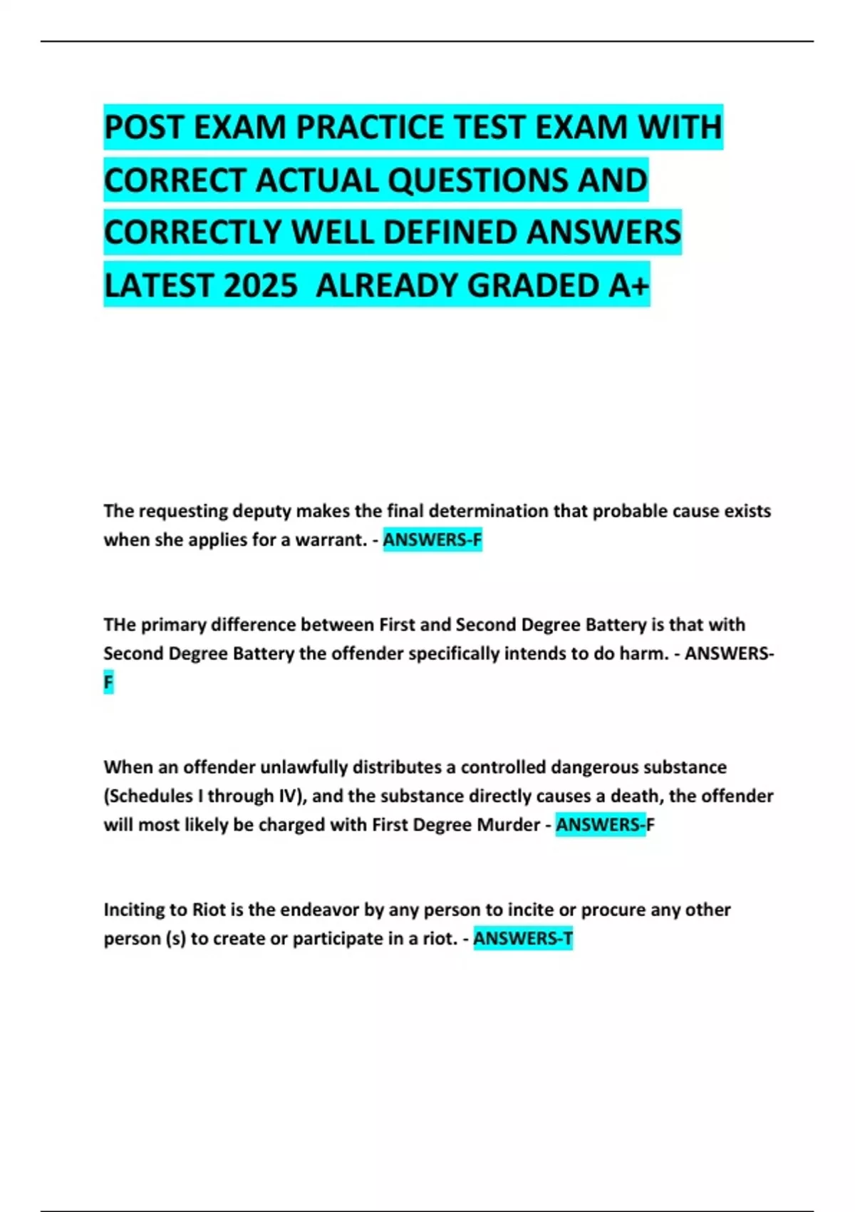 will most likely be charged with First Degree Murder - ANSWERS-F